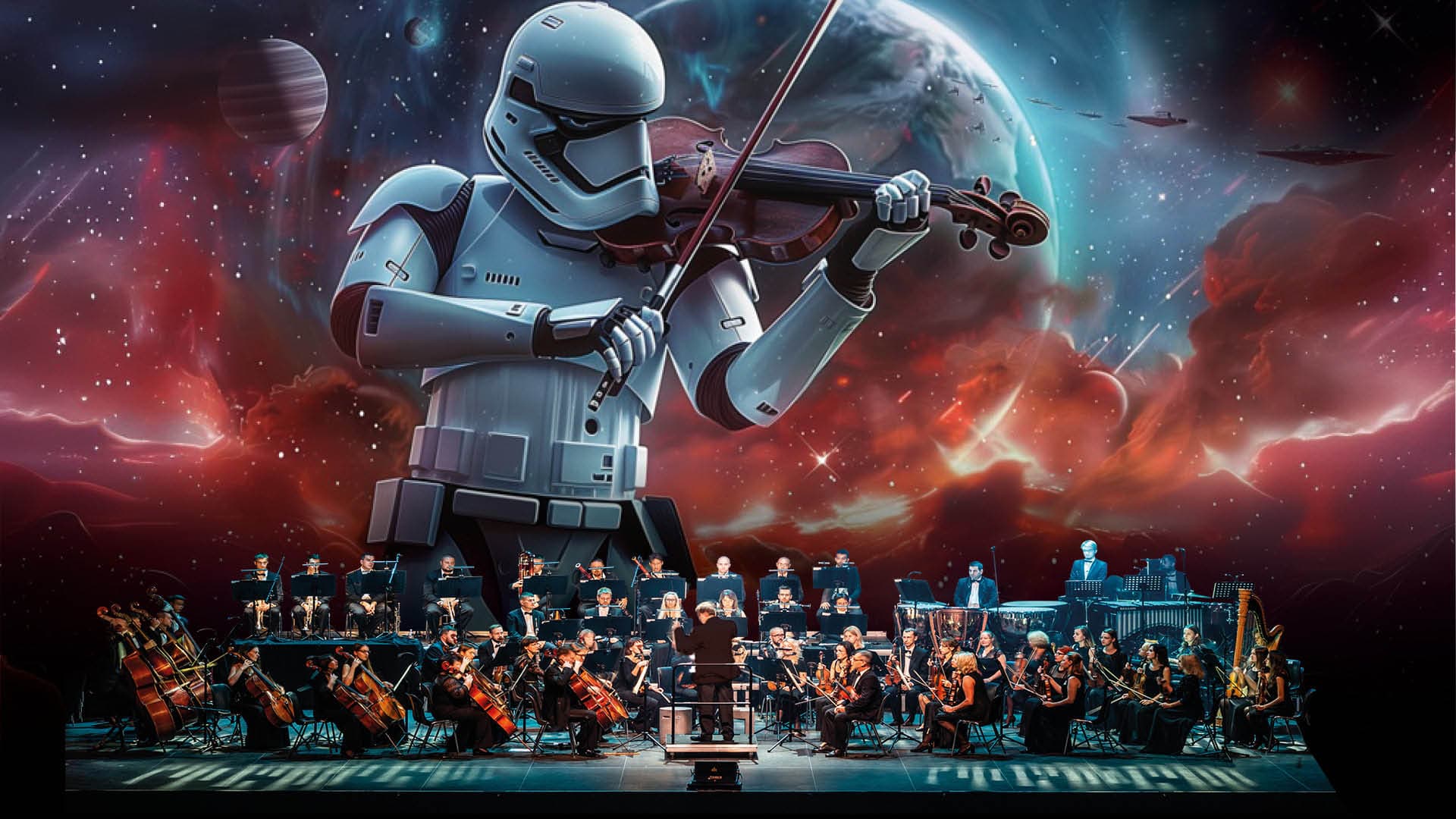 De 65 gedreven muzikanten van het “Grand Symphonique” orkest, een bevlogen dirigent, levensechte Stormtroopers, Darth Vader in eigen persoon, aangrijpende beelden, een spectaculaire lichtshow waarbij je je even in de Melkweg waant…
